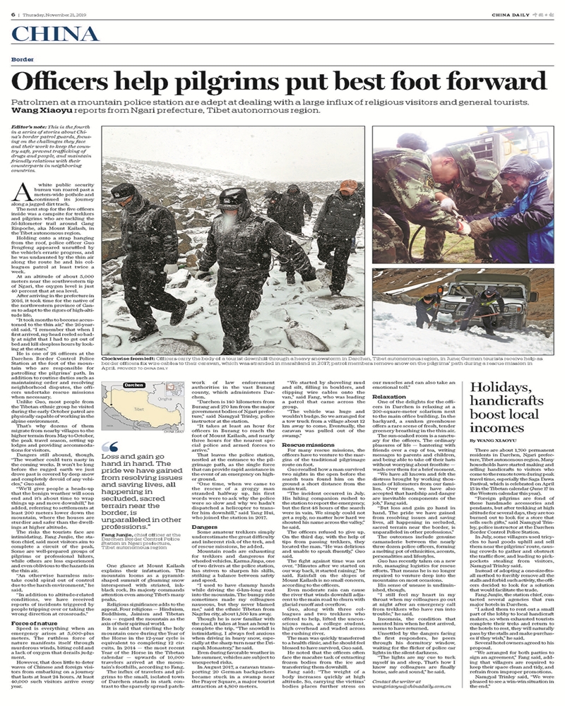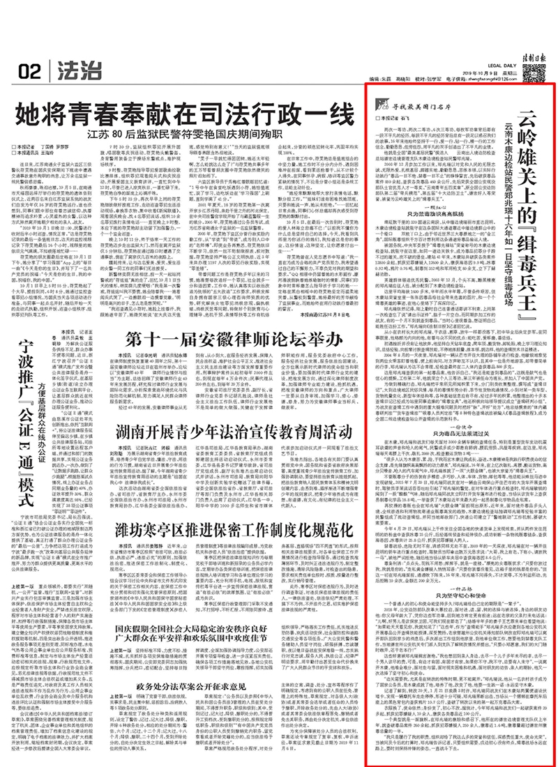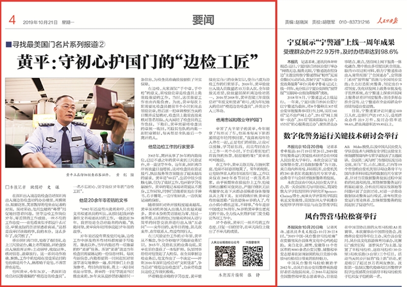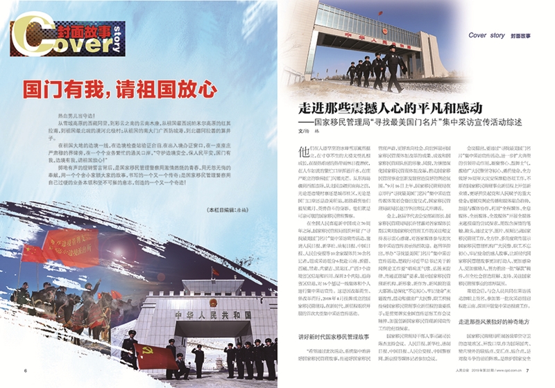人民日報“一線探訪”10月31日用接近一個整版的篇幅,發(fā)表題為《扎根深山守邊人》的文章,點贊云南邊檢總站“緝毒兵王”鄭兆瑞和“獨龍人民的貼心人”獨龍江邊境派出所;法制日報從10月9日、人民公安報從10月20日開始,先后在報紙開設(shè)“尋找最美國門名片”專欄,連續(xù)刊發(fā)16篇通訊報道;中國日報先后用4個整版英文報道,向海內(nèi)外讀者宣傳介紹中國移民管理故事和移民管理警察風貌;《中國雙擁》雜志刊發(fā)5篇國門系列萬字長文報道;中國移民管理報和中國出入境觀察雜志也開設(shè)專欄,在頭版頭條等重要版面推出20余篇重磅報道;新京報我們視頻、中國警察網(wǎng)和局“兩微”在采訪中通過拍攝短視頻、Vlog等形式在新媒體推送《緝毒兵王面對毒販金錢美色誘惑怎么辦》《攻克高原種植的“菜博士”》《我知道他們的名字》《“‘和尚’邊境檢查站”》等視頻、圖文報道,被@人民網(wǎng)、@中國長安網(wǎng)、@中國警方在線、@警民攜手同行等微博大V轉(zhuǎn)發(fā),受到網(wǎng)友熱議好評:“敬佩!這樣的人才配上熱搜”“這才是我們該追的星”“移民管理警察最帥”“要嫁給警察小哥哥”“他們是最可愛的人”“向守衛(wèi)邊疆的英雄致敬!”廣大民警也通過宣傳找到了學(xué)習(xí)的榜樣和追趕的目標。一位青年民警讀完深圳邊檢總站37年堅守驗證臺的“邊檢老黃?!秉S平的故事后,在網(wǎng)上留言,希望像黃平一樣一輩子只做一件事、一輩子做好一件事。算井子邊境派出所民警在看到關(guān)于自己的報道后受到極大鼓舞,他們表示,“我們不怕艱苦,就怕被大家遺忘”,媒體的報道和群眾的肯定就是對他們最大的鼓勵。