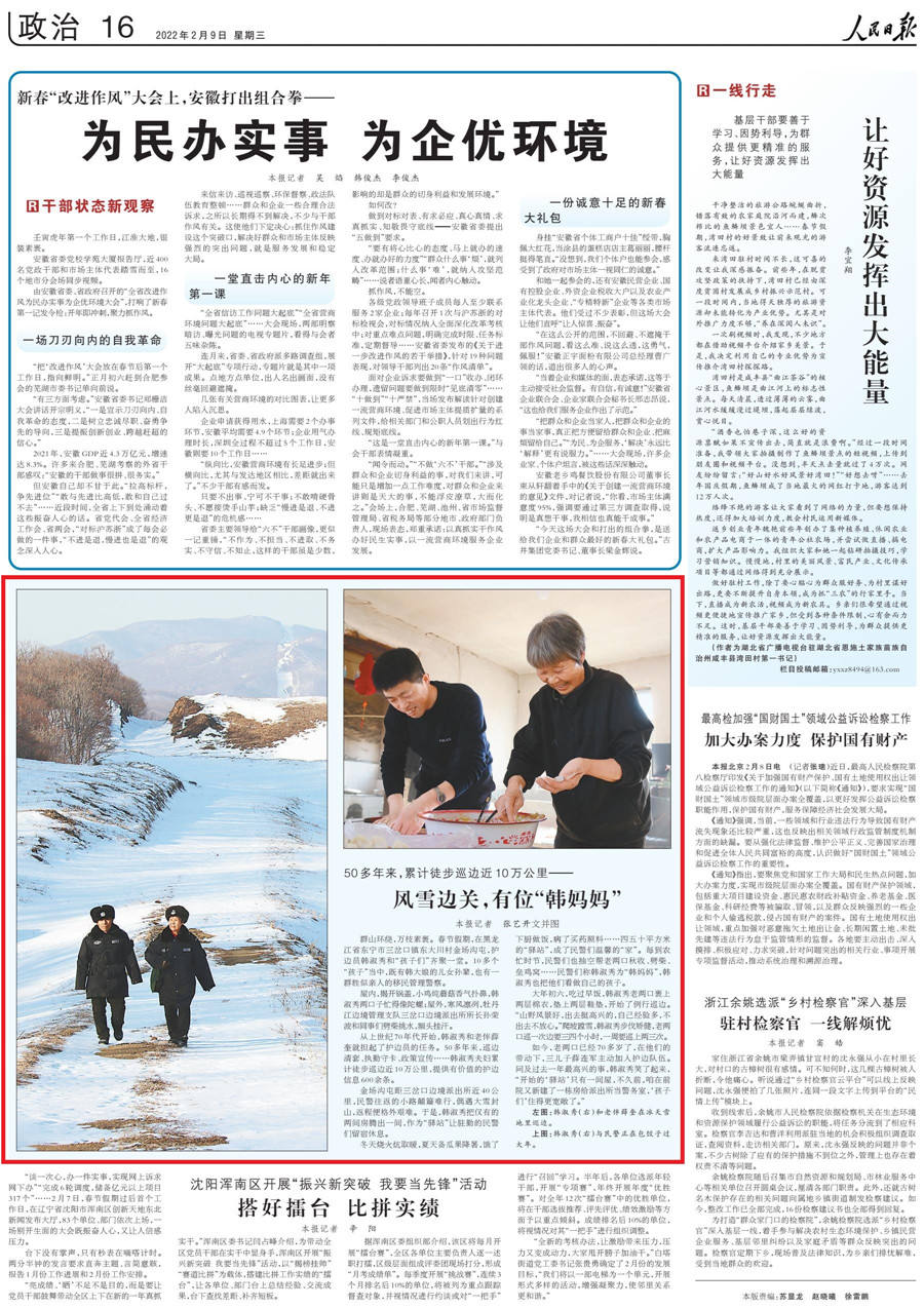 如今,老兩口已經(jīng)70多歲了,在他們的帶動下,三兒子薛連軍主動加入護(hù)邊隊伍。問及過去一年最高興的事,韓淑秀笑了起來,“開始的‘驛站’只有一間屋,不久前,咱在前院又新建了一棟房給派出所當(dāng)警務(wù)室,‘孩子們’住得更寬敞了。