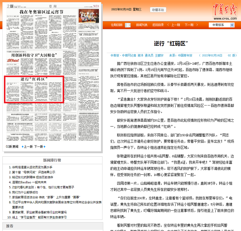【國門戰(zhàn)疫故事】《中國青年報(bào)》:逆行“紅碼區(qū)”