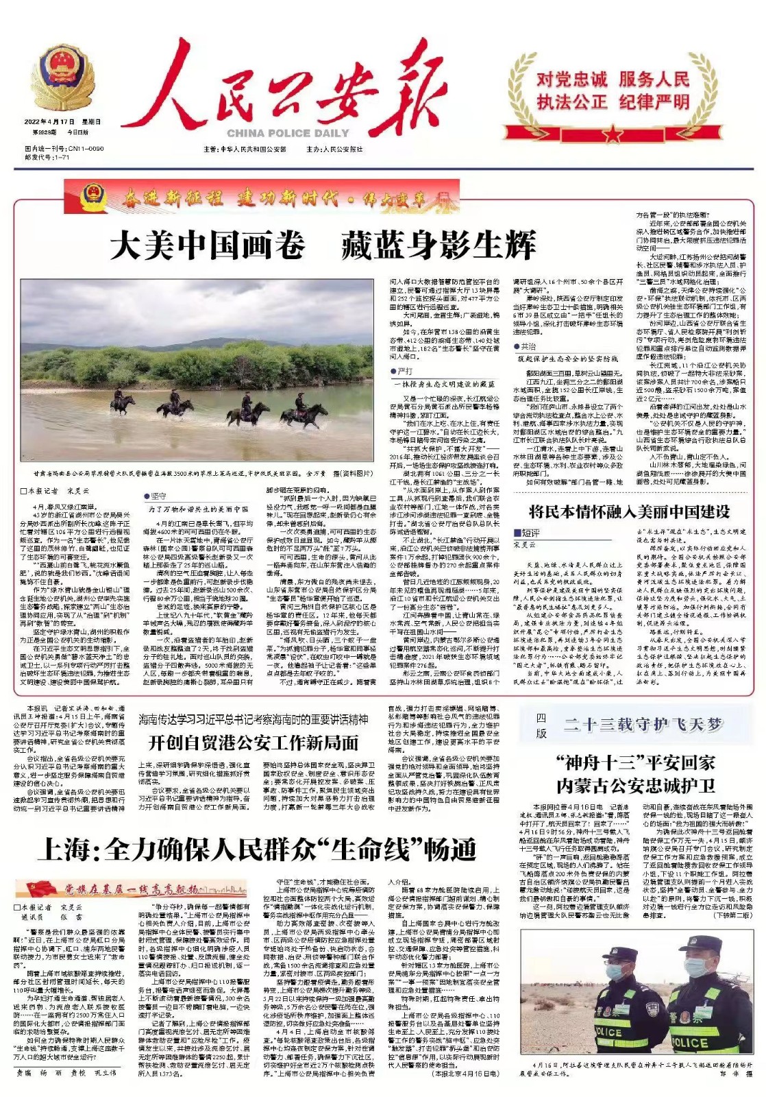《人民公安報(bào)》2022年4月17日頭版轉(zhuǎn)2版,并刊發(fā)專版報(bào)道: