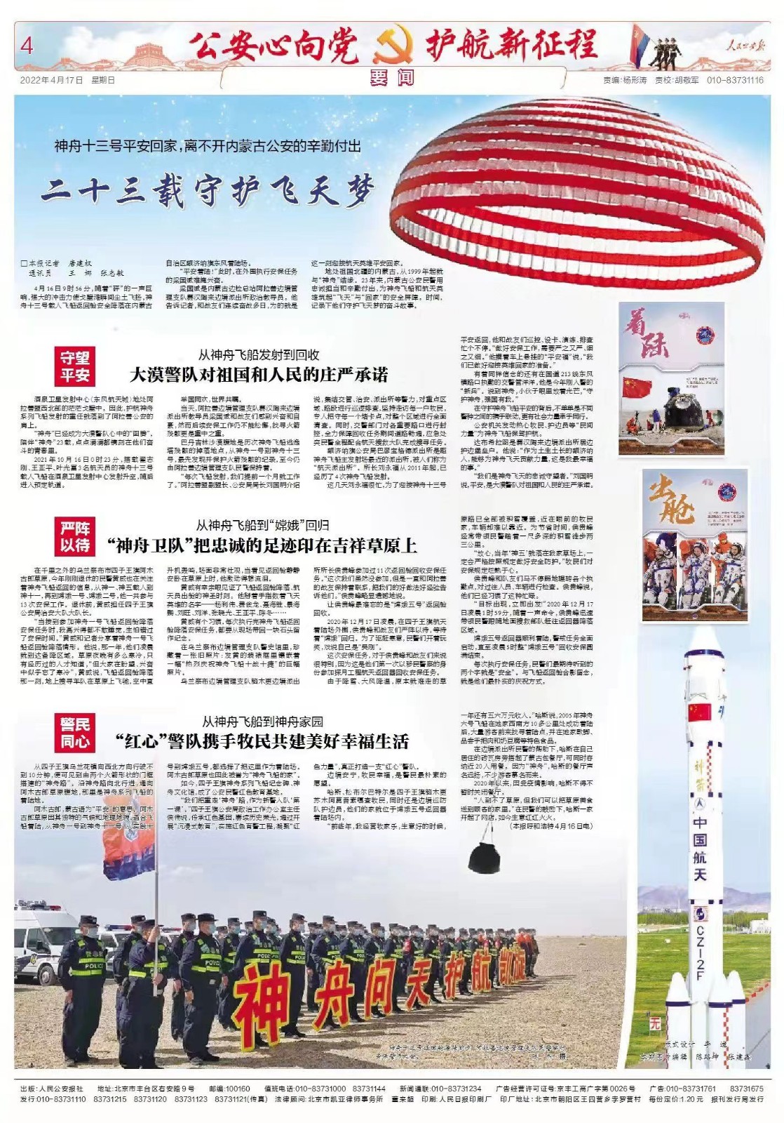《人民公安報(bào)》:二十三載守護(hù)飛天夢(mèng)