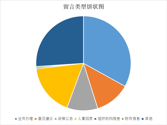 從留言類型看,涉及群眾出入境相關業(yè)務咨詢的留言最多,共計85條,占比32.20%;意見建議類留言共計31條,占比11.74%;政策公告類留言共計27條,占比為10.23%;人事招錄類留言共計45條,占比為17.05%;組織機構信息類留言共計1條,占比為0.38%;財務信息類留言共計1條,占比為0.38%;其他類留言共計67條,占比為25.38%;