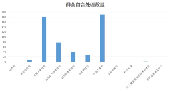 國家移民管理局門戶網(wǎng)站群眾留言處理統(tǒng)計(jì)數(shù)據(jù)