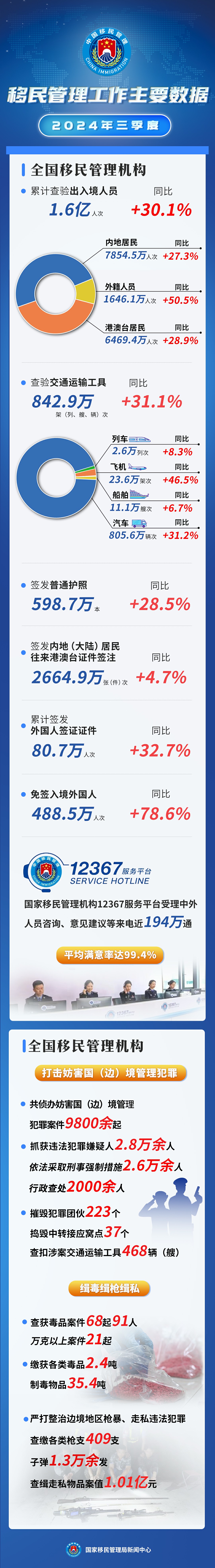 一圖看懂!2024年三季度移民管理工作主要數(shù)據(jù)