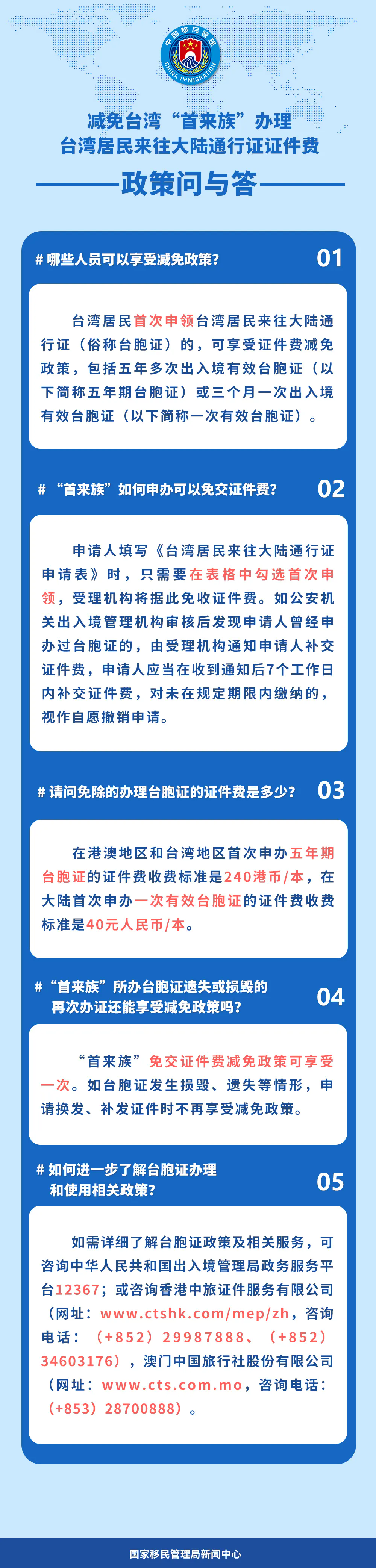 減免臺(tái)灣“首來(lái)族”辦理臺(tái)灣居民來(lái)往大陸通行證證件費(fèi) 政策問(wèn)與答