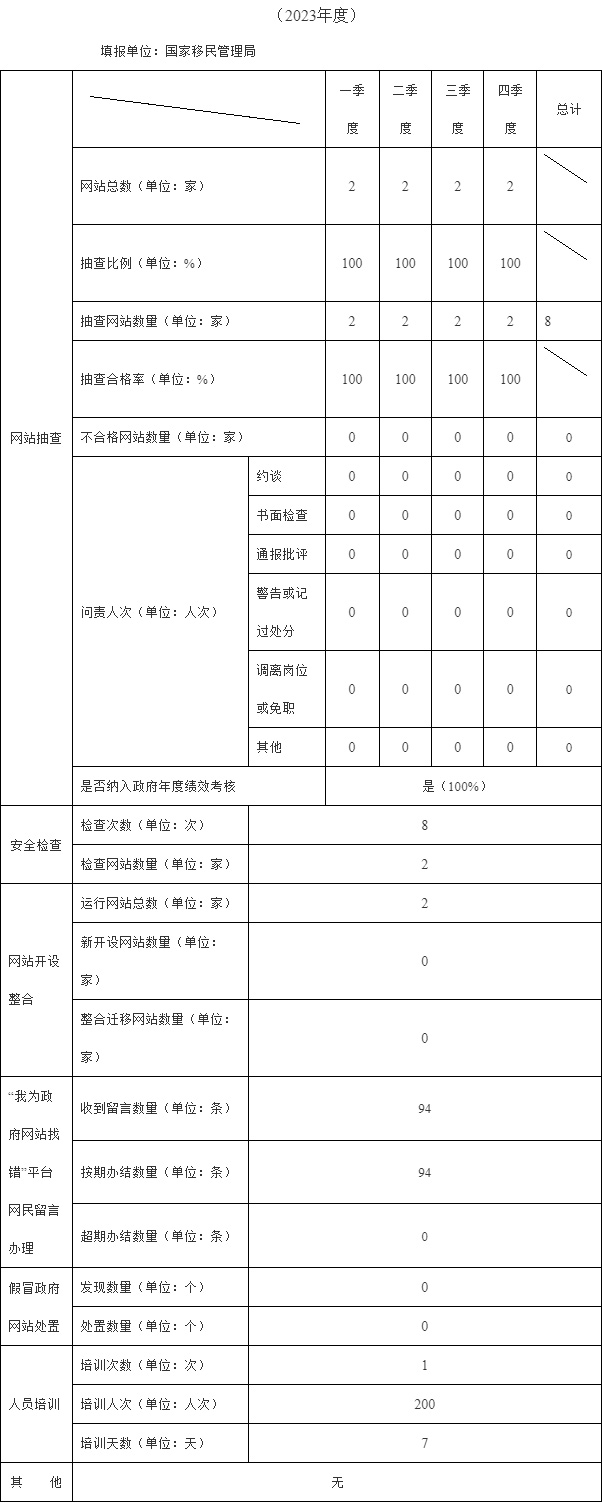 國家移民管理局政府網(wǎng)站監(jiān)管年度報(bào)表