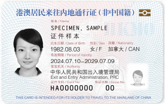 港澳居民來往內(nèi)地通行證(非中國籍)式樣