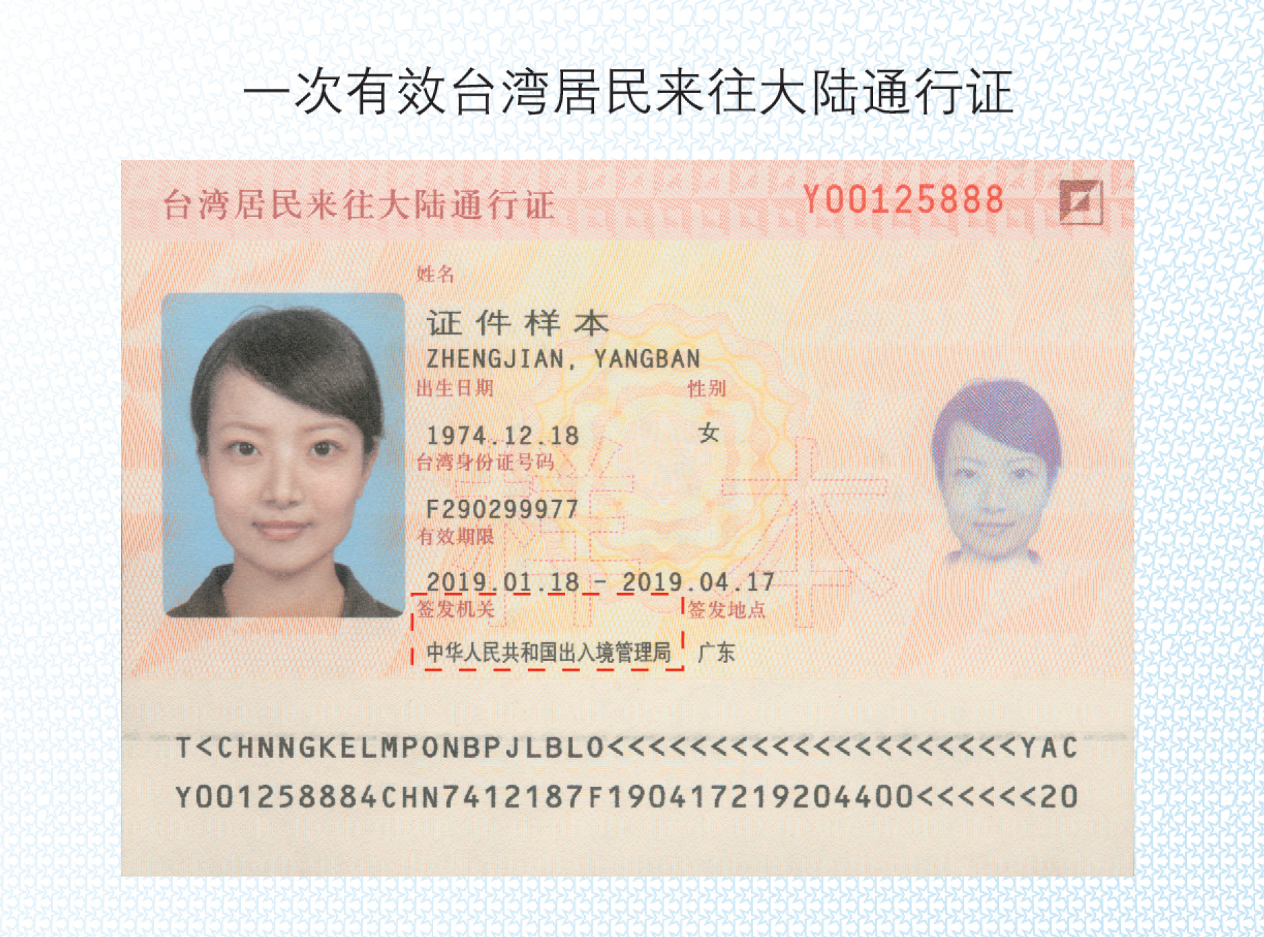 一次有效臺灣居民來往大陸通行證樣式