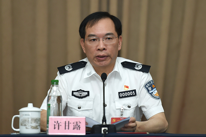 許甘露要求,要切實(shí)加強(qiáng)黨的政治領(lǐng)導(dǎo),緊緊圍繞黨中央對(duì)新時(shí)代公安工作的職責(zé)定位和公安機(jī)關(guān)肩負(fù)的新時(shí)代使命任務(wù),錨定“四個(gè)鐵一般”標(biāo)準(zhǔn),始終從政治上建設(shè)和掌握移民管理隊(duì)伍,確保各項(xiàng)業(yè)務(wù)開展和隊(duì)伍教育管理與公安工作政治標(biāo)準(zhǔn)統(tǒng)一、政治要求統(tǒng)一、政治效果統(tǒng)一,讓黨的旗幟在每一座國(guó)門、每一段邊境、每一個(gè)窗口高高飄揚(yáng)。要堅(jiān)持用習(xí)近平新時(shí)代中國(guó)特色社會(huì)主義思想武裝頭腦,自覺主動(dòng)學(xué)、及時(shí)跟進(jìn)學(xué)、聯(lián)系實(shí)際學(xué)、篤信篤行學(xué),增強(qiáng)學(xué)習(xí)內(nèi)生動(dòng)力,增強(qiáng)學(xué)習(xí)韌勁,增強(qiáng)付諸實(shí)踐能力,學(xué)出堅(jiān)定信仰、學(xué)出使命擔(dān)當(dāng)。要全面加強(qiáng)各級(jí)黨組織建設(shè),充分發(fā)揮黨委把方向、管大局、保落實(shí)的作用,增強(qiáng)黨支部政治功能,樹立大抓基層、大抓基礎(chǔ)的導(dǎo)向,促進(jìn)基層黨組織全面進(jìn)步、全面過(guò)硬。要堅(jiān)持全面從嚴(yán)管黨治警不動(dòng)搖,堅(jiān)決徹底肅清孟宏偉流毒影響,全面啟動(dòng)政治巡視巡察,狠抓監(jiān)督執(zhí)紀(jì)問(wèn)責(zé),突出領(lǐng)導(dǎo)機(jī)關(guān)和領(lǐng)導(dǎo)干部這一“關(guān)鍵少數(shù)”,持之以恒正風(fēng)肅紀(jì),實(shí)現(xiàn)正氣充盈、政治清明。要發(fā)揚(yáng)自我革命精神,深入開展“不忘初心、牢記使命”主題教育,力戒形式主義、官僚主義,以實(shí)實(shí)在在的行動(dòng)、實(shí)實(shí)在在的成效贏得基層、贏得警心、贏得民意。