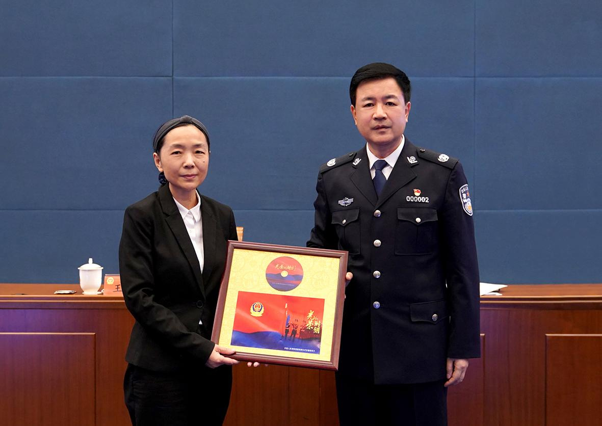 圖為公安部黨委副書記、常務(wù)副部長王小洪代表公安部黨委,向劉小琳同志贈送了一份特殊的紀(jì)念——記錄中國人民警察警旗授旗儀式的音像資料片《光榮的時刻》。滿博攝影
