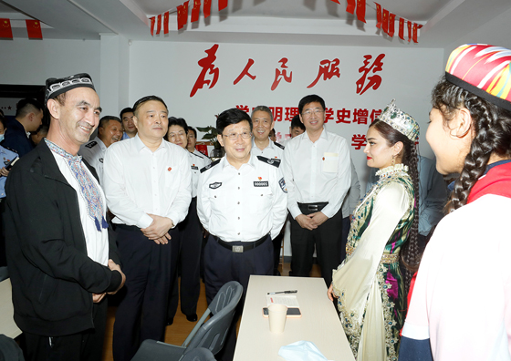 5月22日至24日,國務(wù)委員、公安部黨委書記、部長趙克志在廣西調(diào)研。圖為趙克志在桂林市七星區(qū)少數(shù)民族服務(wù)中心,與正在“石榴籽課堂”學(xué)習(xí)的維吾爾族群眾親切交流。