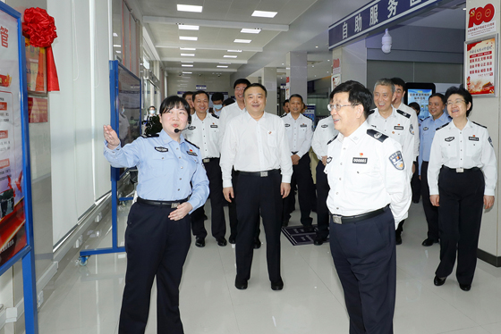 趙克志強調(diào),要堅持學(xué)史明理,把學(xué)習(xí)習(xí)近平新時代中國特色社會主義思想作為黨史學(xué)習(xí)教育重點任務(wù)的第一條,作為廣大黨員民警政治輪訓(xùn)的核心內(nèi)容,深刻領(lǐng)悟習(xí)近平新時代中國特色社會主義思想的科學(xué)性真理性,切實感悟思想偉力,堅持不懈用黨的創(chuàng)新理論最新成果武裝頭腦、指導(dǎo)實踐、推動工作。要堅持學(xué)思用貫通、知信行統(tǒng)一,立足新發(fā)展階段、貫徹新發(fā)展理念、構(gòu)建新發(fā)展格局,統(tǒng)籌發(fā)展與安全,增強工作的系統(tǒng)性、預(yù)見性、創(chuàng)造性,著力推動新時代公安工作高質(zhì)量發(fā)展。