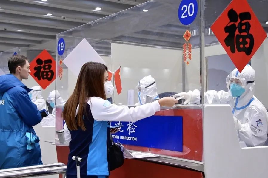 圖為北京出入境邊防檢查總站移民管理警察為參加2022年北京冬奧會運(yùn)動員辦理邊檢手續(xù)。(祖國寶 攝)