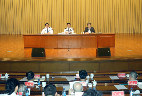 公安部黨委副書(shū)記、常務(wù)副部長(zhǎng)王小洪主持會(huì)議,在京公安部黨委委員出席會(huì)議。部分部級(jí)老同志應(yīng)邀出席會(huì)議。中央第十一指導(dǎo)組有關(guān)同志,部屬各單位負(fù)責(zé)同志和部機(jī)關(guān)副處級(jí)以上干部參加會(huì)議。部機(jī)關(guān)其他干部通過(guò)機(jī)關(guān)閉路電視收聽(tīng)收看。(圖:滿博)