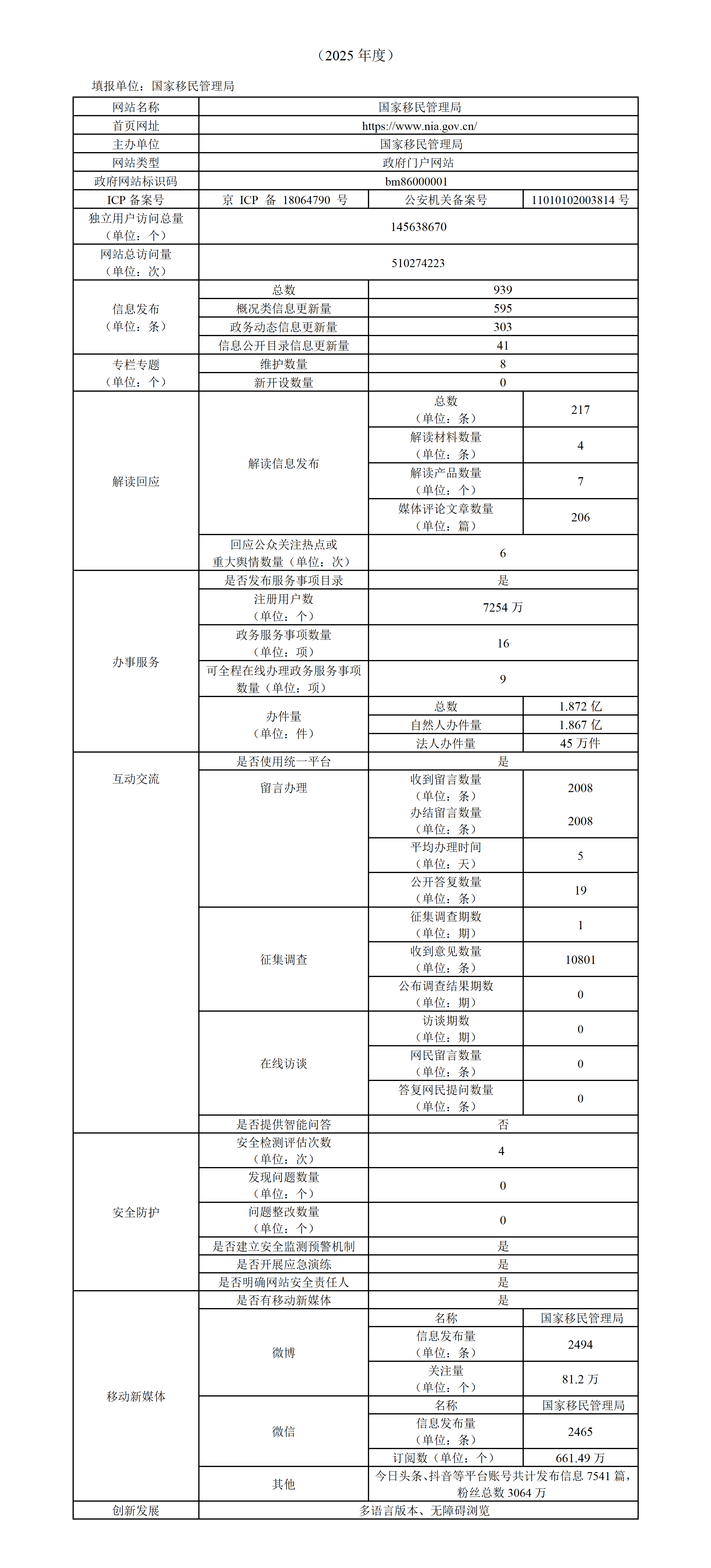 2025年國家移民管理局政府網(wǎng)站工作年度報表專題